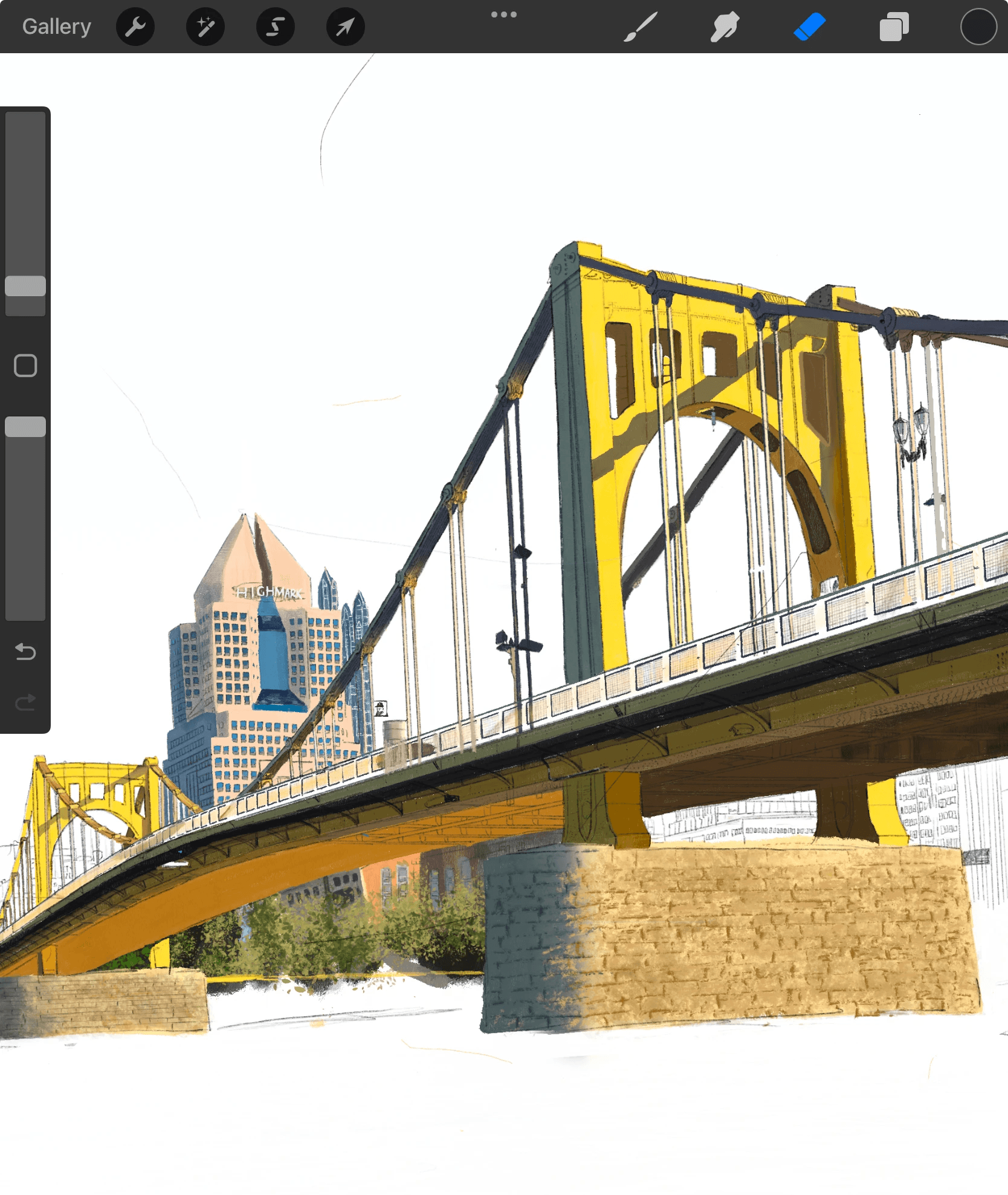 I'm working on a painting of my favorite yellow bridge in Pittsburgh- each stroke a quiet love letter to the city.
