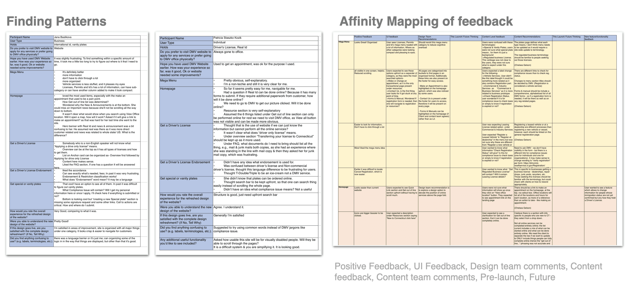 We synthesized the data from moderated user testing in form of excel sheets. Then categorized all the recommendations in 2 categories: 1. Area of impact (design or content) 2. Timeframe to implement (pre-launch or Future thinking)